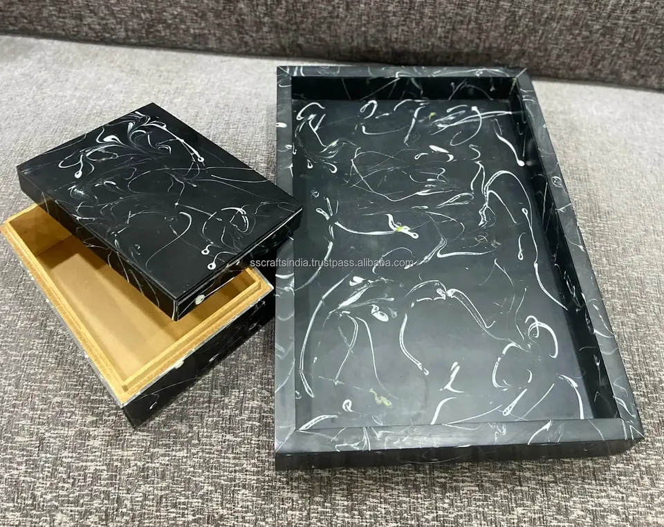 Caja de bandeja de resina rectangular Premium, bandeja decorativa de madera con incrustaciones de hueso hechas a mano para Hotel, restaurante, cocina y uso diario