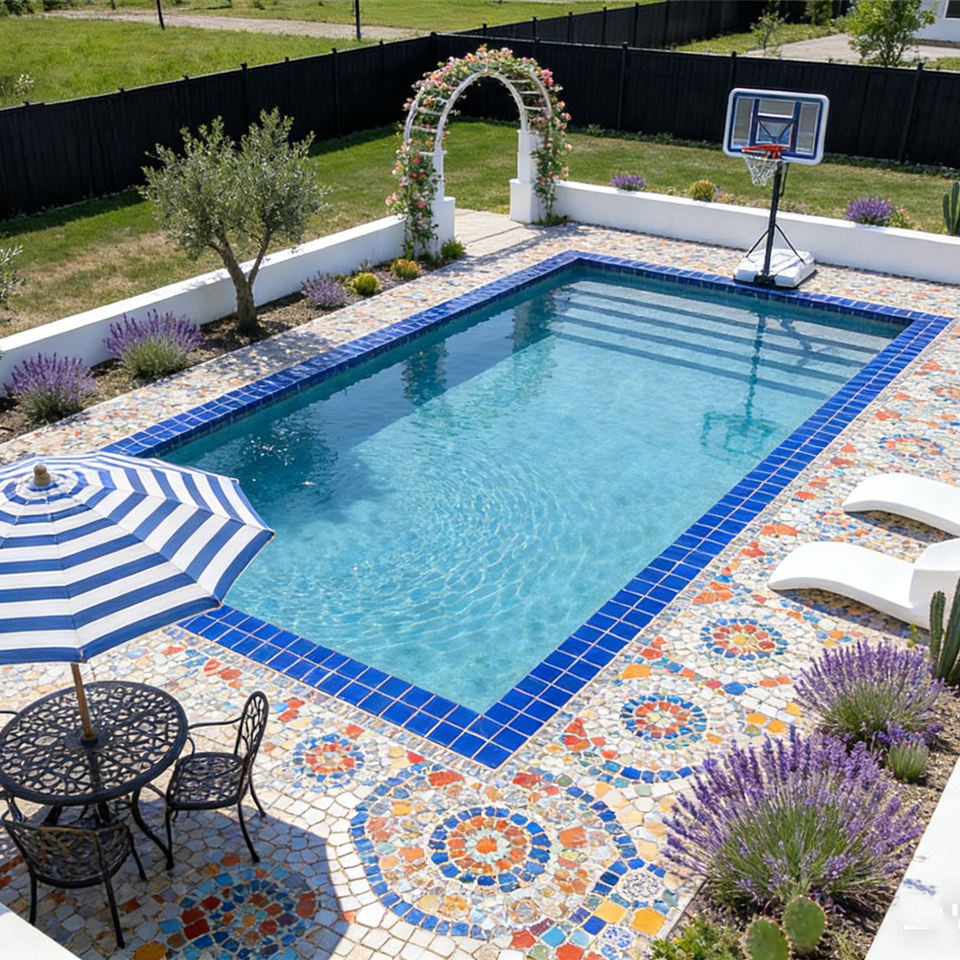Piscina rectangular prefabricada de fibra de vidrio de alta calidad, de bajo mantenimiento, grande, para patio trasero, personalizada.