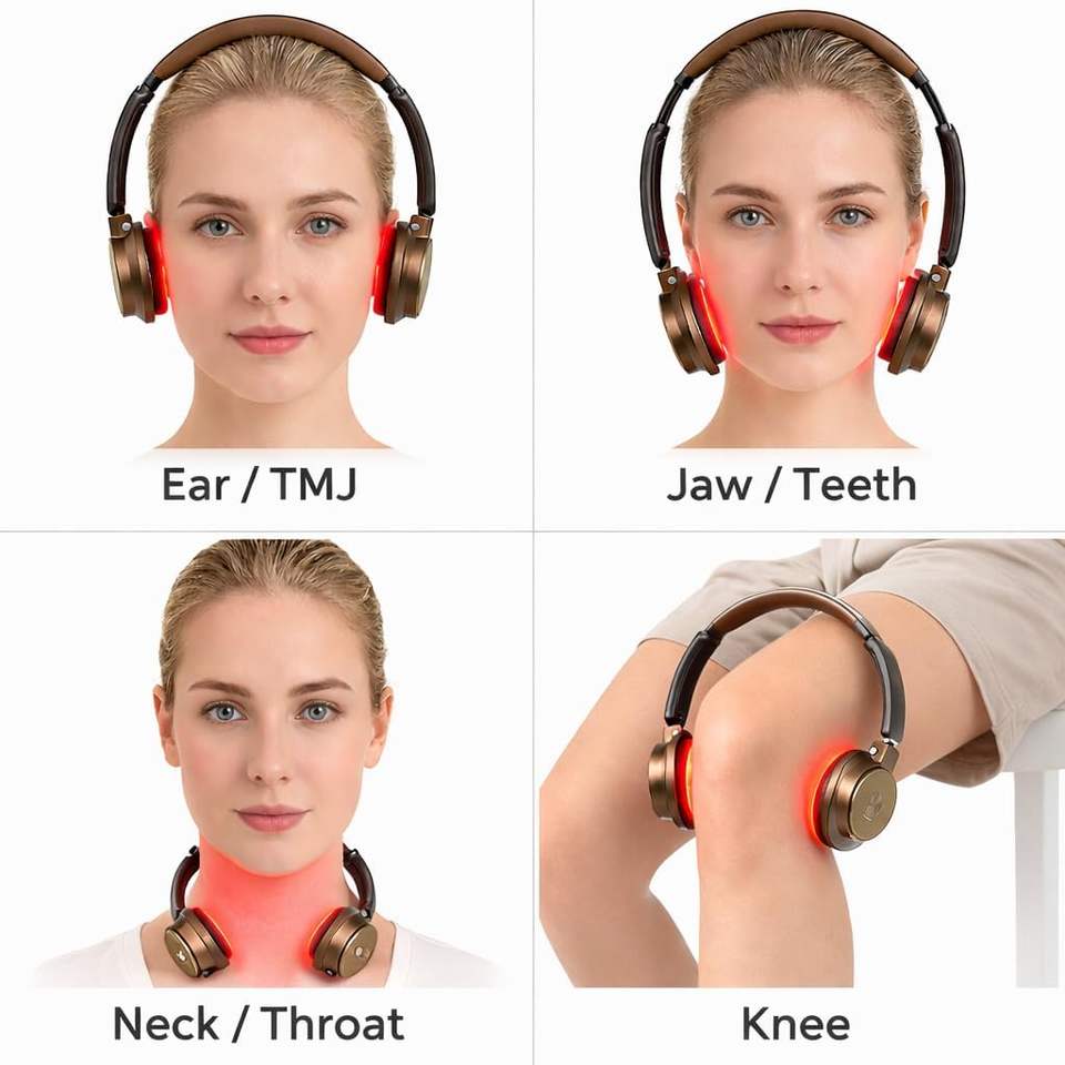 Dispositivo de Terapia de Luz Roja Premium para Cabeza y Oreja, 650/850/940nm, Infrarrojo, para Oreja, Mandíbula, TMJ, Dientes, Garganta y Cuello, Recargable, 4 Modos
