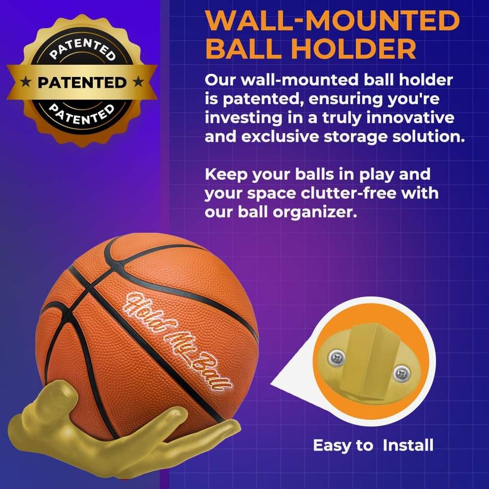 Soporte de Pared para Balones Deportivos Hold My Ball, de Resina Dorada Premium, para Baloncesto, Fútbol, Exhibición en Garaje