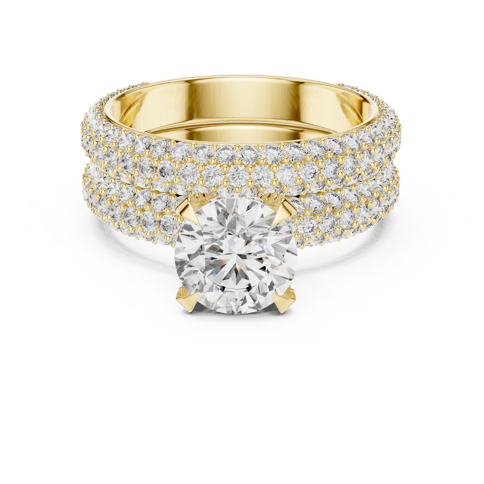 Anillo de Diamante Cultivado en Laboratorio de Forma Redonda Premium, Halo Floral, Doble Banda, Pavé, Oro de 10k/14k/18k y Plata 925, Anillo de Compromiso