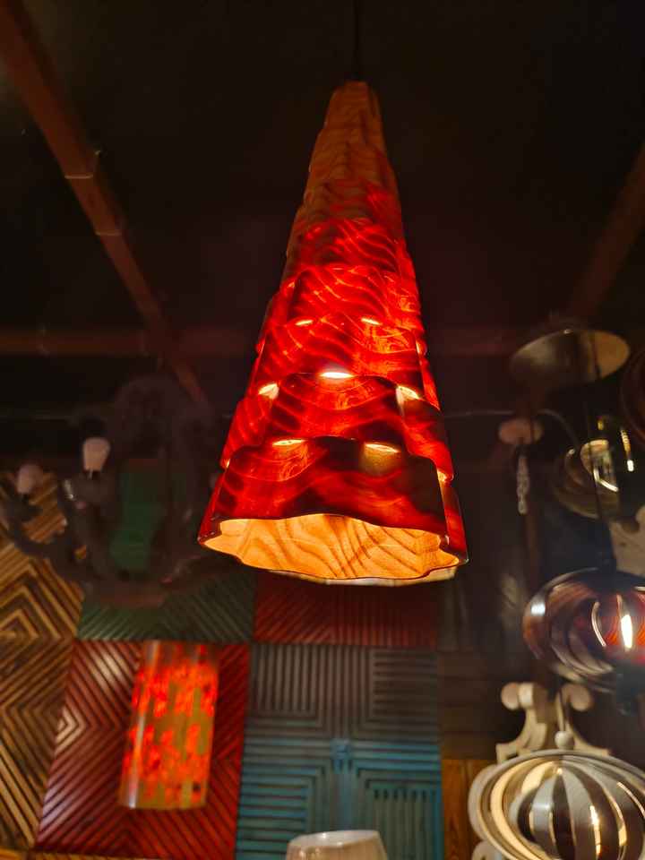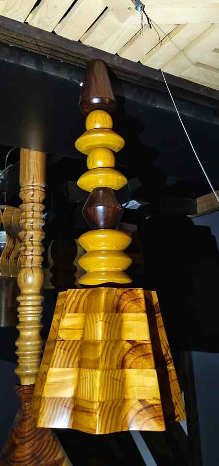 Lámpara colgante de madera de pino hecha a mano con lámpara de techo LED rústica de primera calidad con bombilla elegante forma larga y ovalada iluminación elegante para el hogar