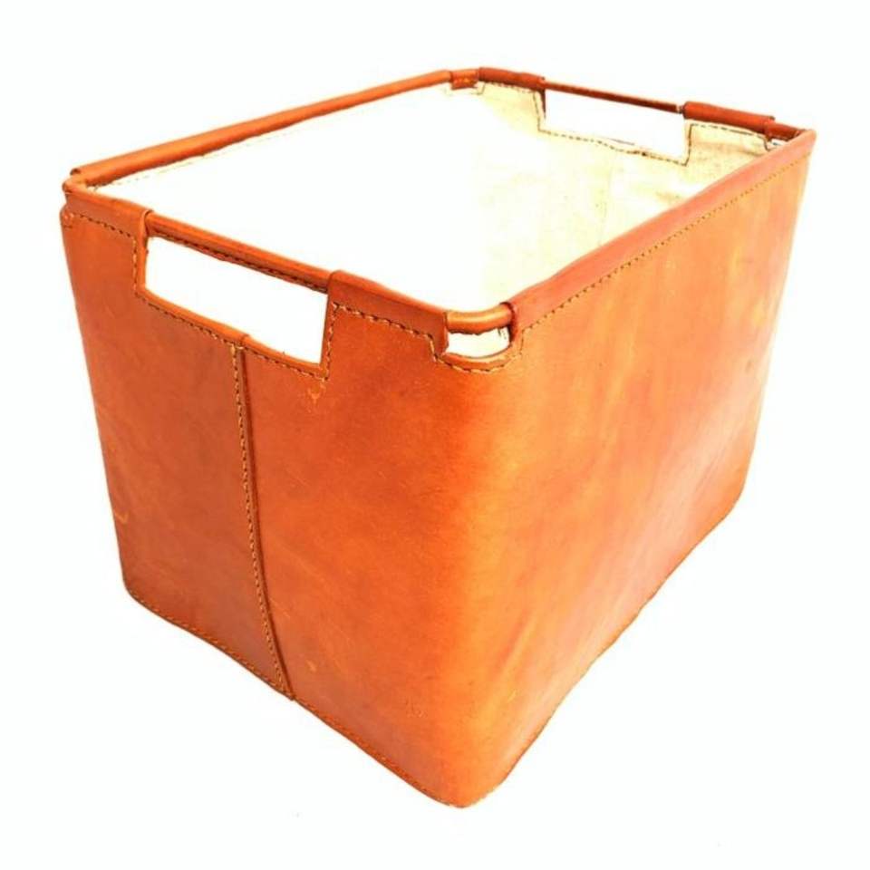 Cesta de almacenamiento de cuero rústico de primera calidad, contenedor organizador hecho a mano para decoración del hogar, solución de almacenamiento ecológica, duradera y elegante