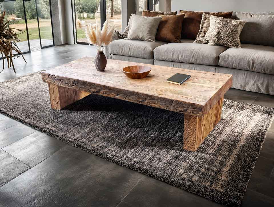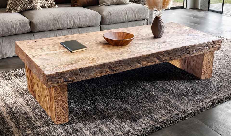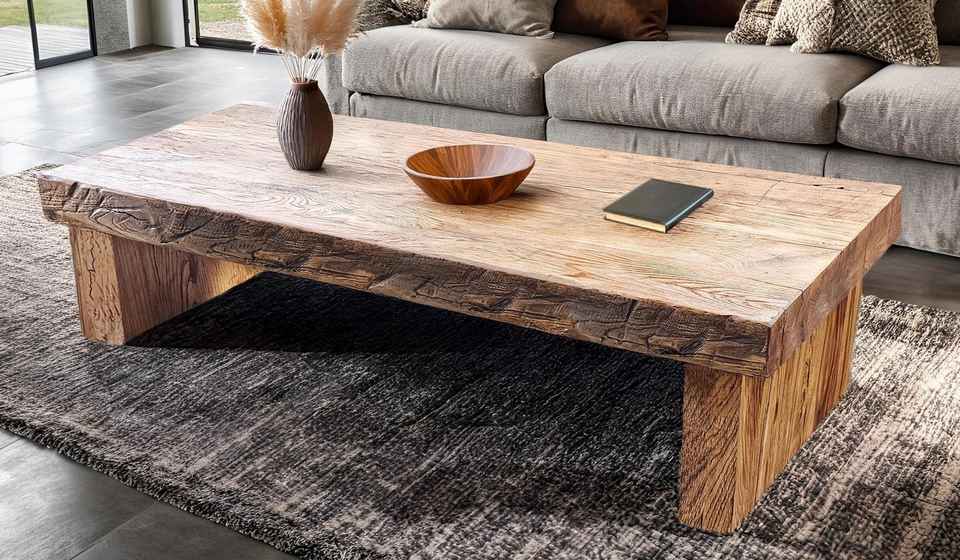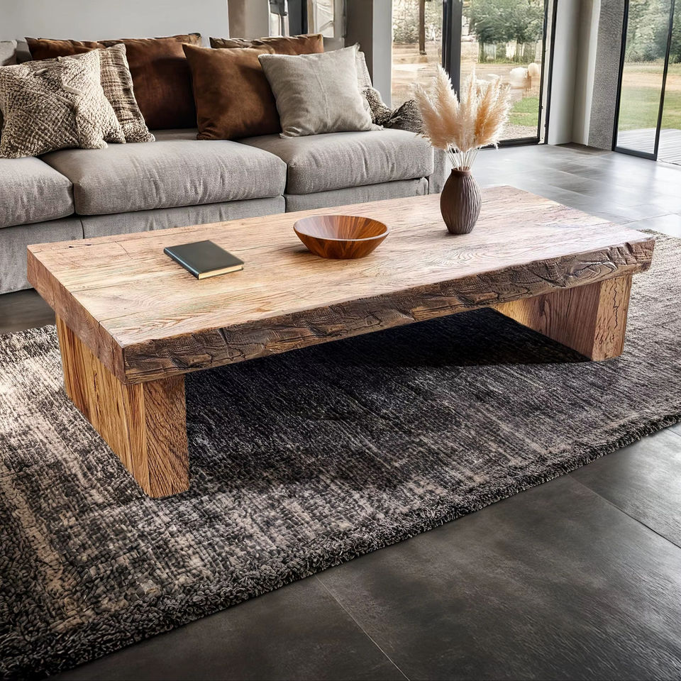 Mesa de Centro de Madera Rústica Premium Hecha de Madera Natural Sólida con Diseño de Baja Altura y Estructura Resistente para Hogar Moderno