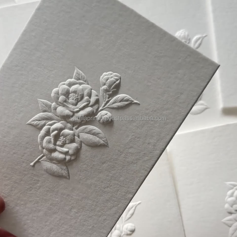 Invitación de Boda Impresa en Papel Cartulina con Grabado en Relieve, Impresión Tipográfica y Offset, Logotipo Personalizado, Diseño Artesanal