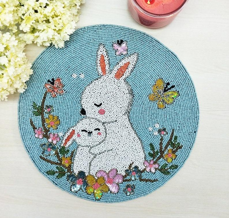 Manteles Individuales Redondos de Lujo, Ecológicos, Hechos a Mano con Cuentas de Semillas Bordadas, Artísticos, Personalizables y Modernos para Bodas y Cenas