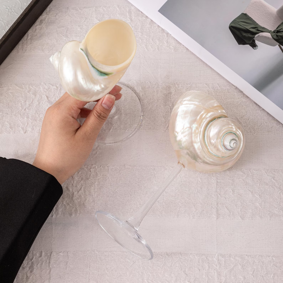 Copas de Vino Premium con Conchas Marinas Naturales Brillantes, Perfectas para Bodas en la Playa o Decoración de Bares de Lujo