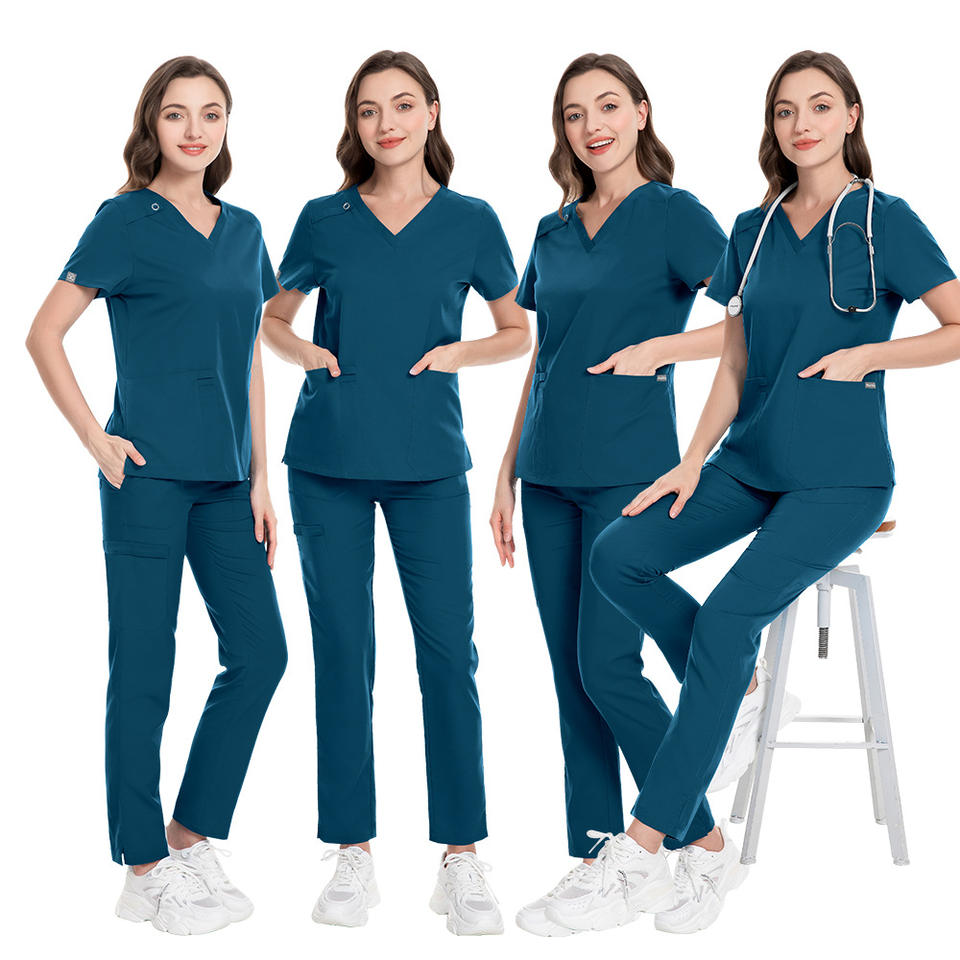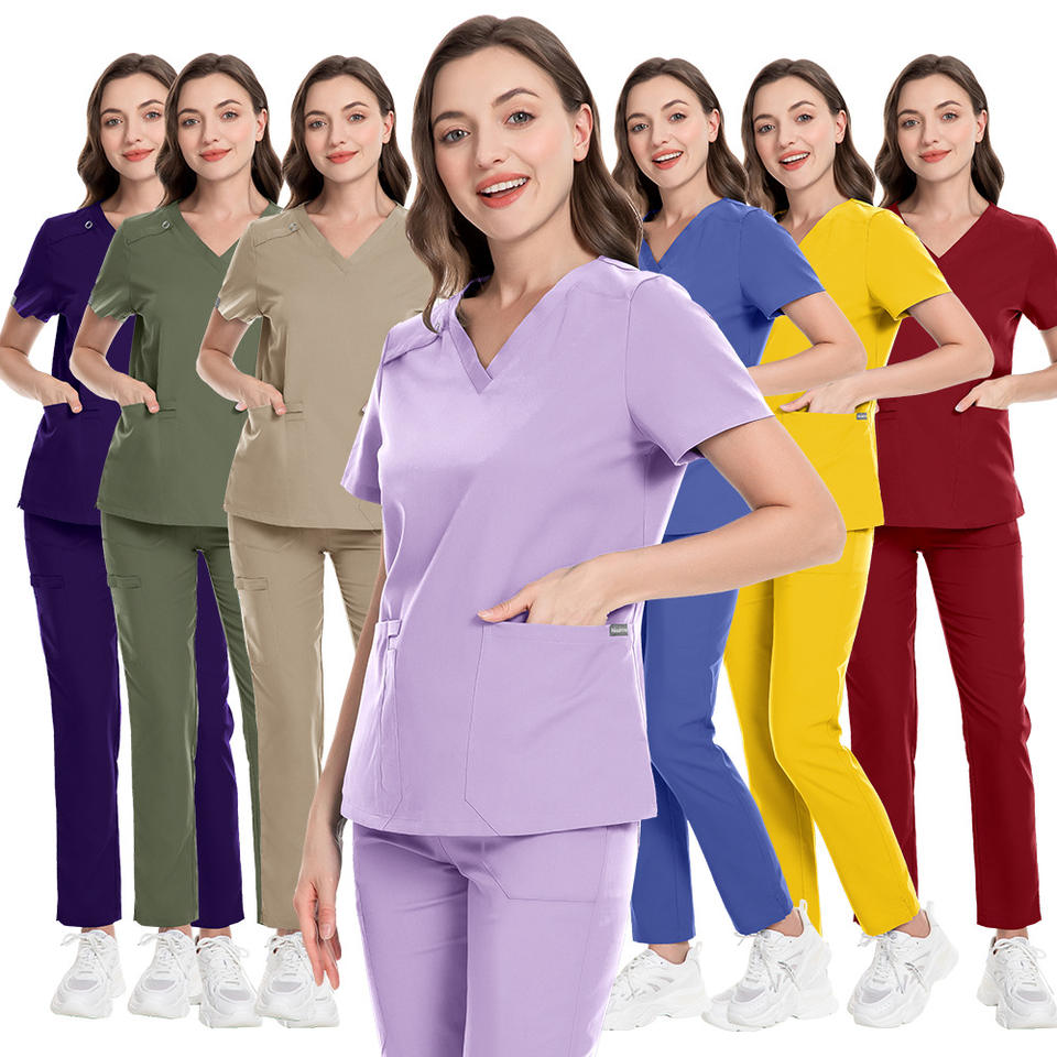 Uniformes médicos de Enfermería de rayón Spandex de poliéster suave de primera calidad con bolsillos uniformes médicos elegantes para médicos y enfermeras