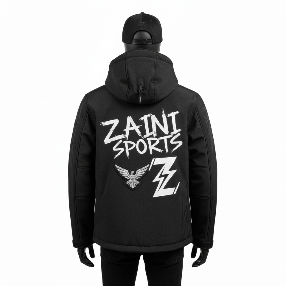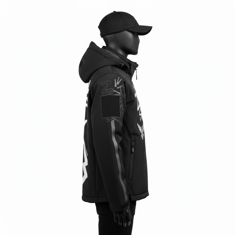 Chaqueta Softshell Premium Resistente al Agua Transpirable Negra con Manga Personalizada con Logotipo Bordado en Serigrafía para Hombre
