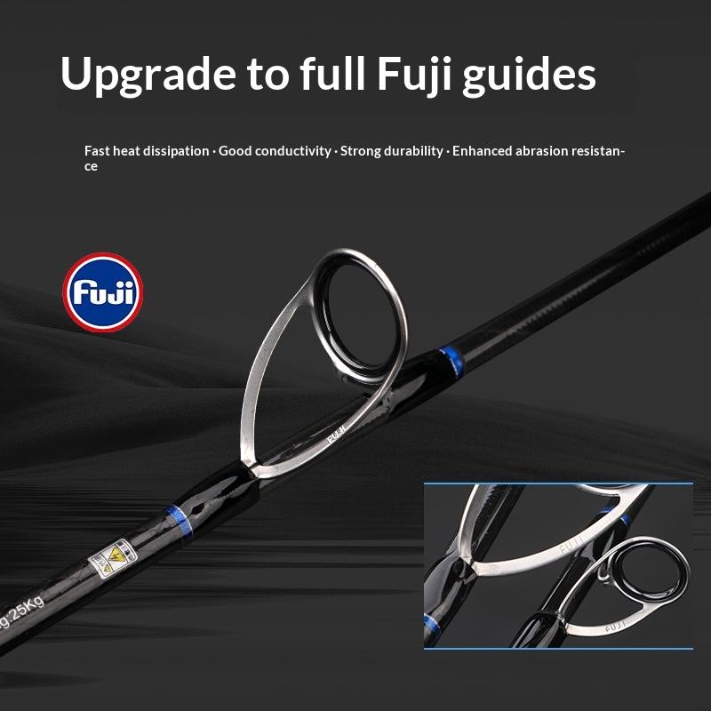Caña de Pescar Premium de Fibra de Carbono FUJI de 5 Piezas, Ligera, para Pesca en Alta Mar, Spinning, Jigging, Agua Salada