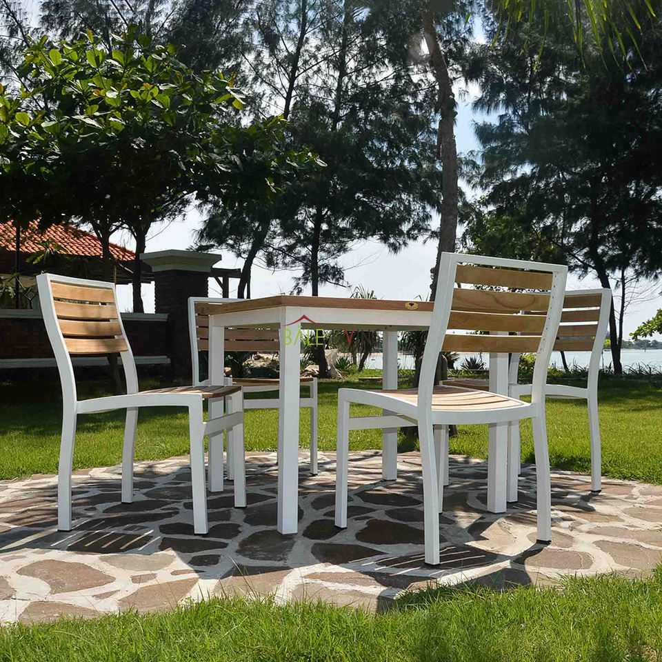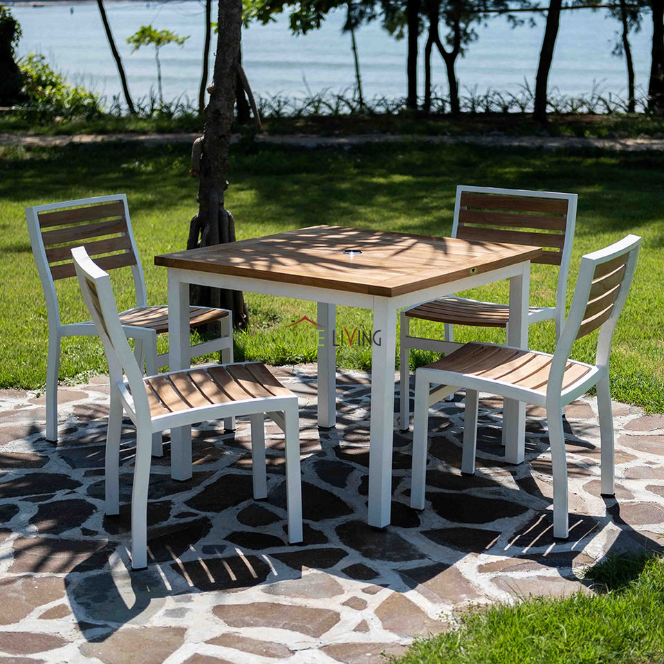 Juego de mesa de comedor minimalista de madera de teca maciza de primera calidad para exteriores, muebles para hoteles elegantes y duraderos de Villa