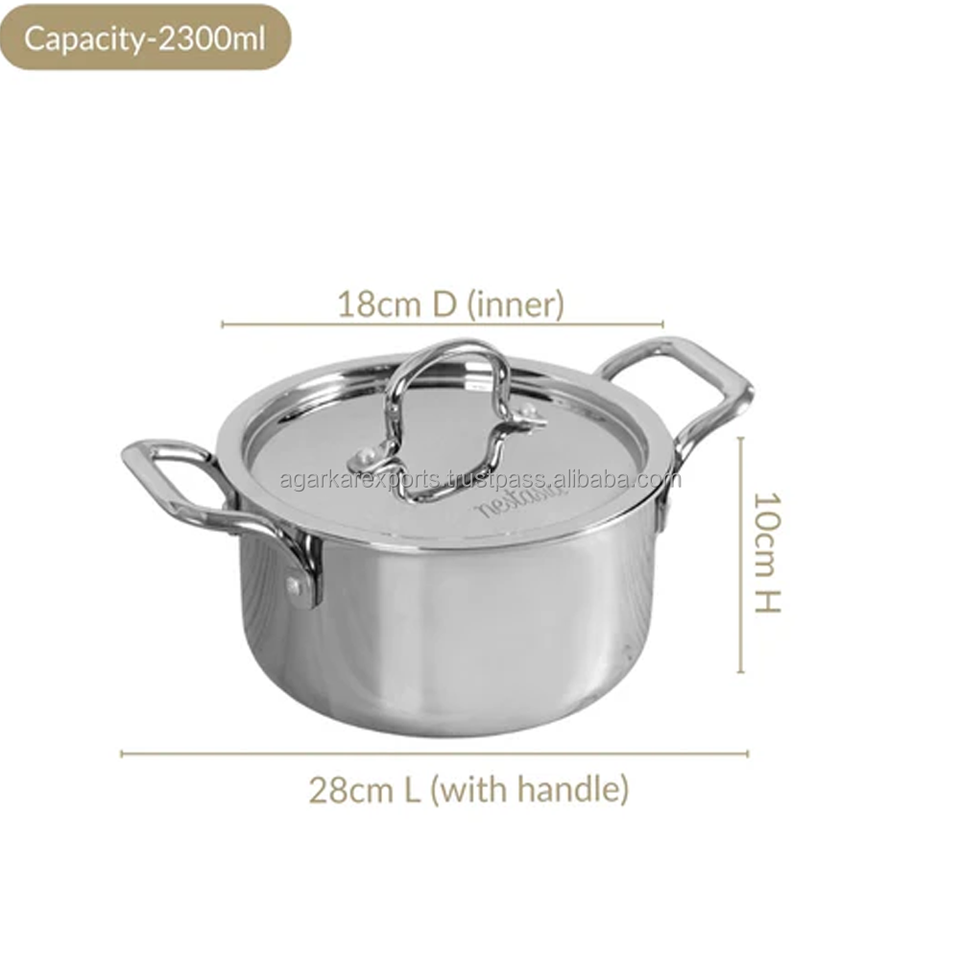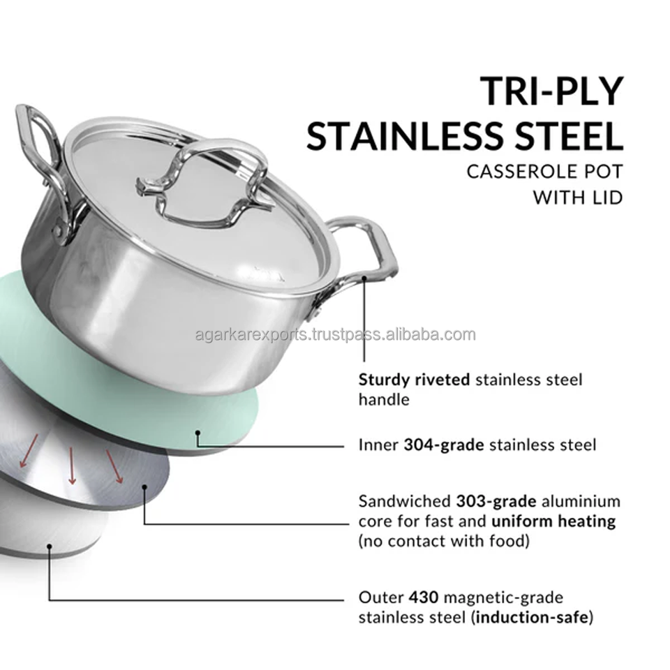 Olla de Cocina Triple de Acero Inoxidable Premium de 3L con Tapa de Vidrio, Compatible con Inducción, Apta para Lavavajillas