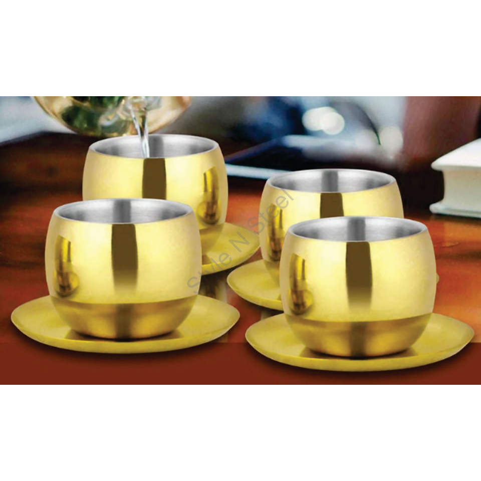 Name:Stainless Steel 4 PCS Double Wall Cup and Saucer with Gold