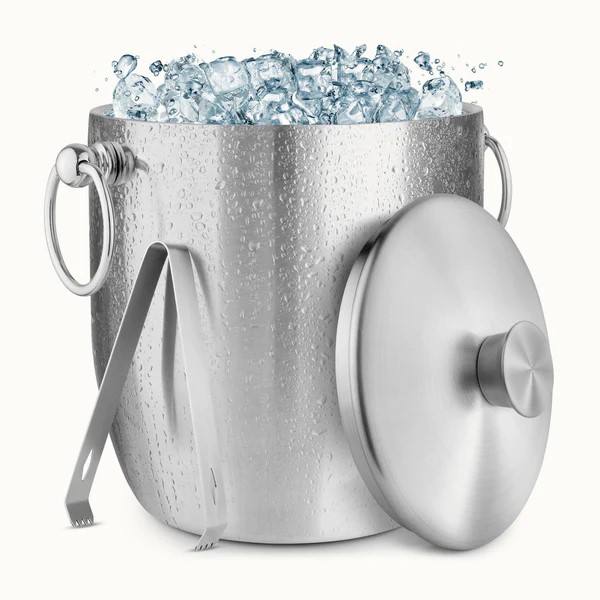 Cubo de Hielo Premium de Acero Inoxidable con Tapa, Pinzas y Asas de Anillo, Diseño Aislado para Fiestas en Casa, Bares y Regalos