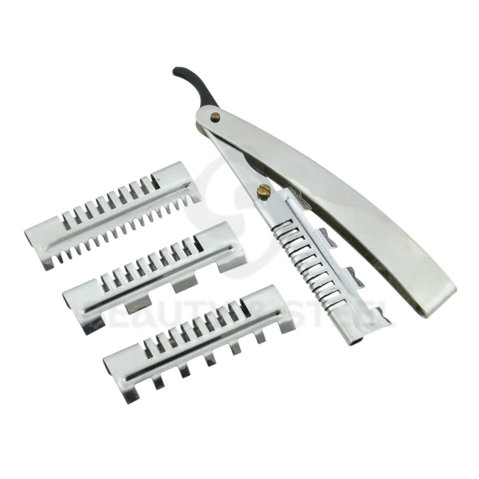 Navaja de Entresacar Profesional de Acero Inoxidable Premium para Salón, con Cuatro Protectores de Texturización, Herramienta de Entresacado Suave