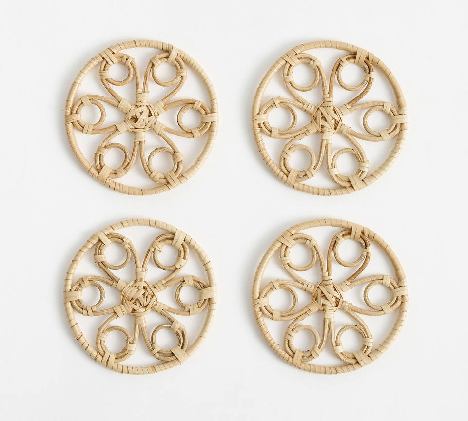 Posavasos de Mimbre Tejidos a Mano con Motivo de Girasol, Juego de 4 Posavasos Artesanales para Decoración de Hogar de Lujo