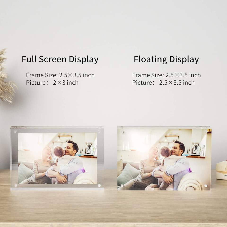 Marco de Fotos Acrílico Magnético Grueso Premium, Imán N52, Transparente, Doble Cara, Protección UV, Tamaño Personalizado para Escritorio