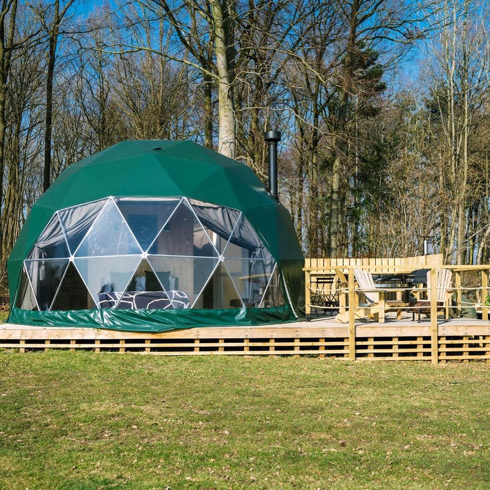 Domo Geodésico Transparente Premium para Glamping, Ecológico, Resistente al Fuego, Protección Total contra la Intemperie, para 3-4 Personas