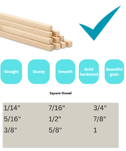 Varillas Cuadradas de Madera Maciza Sin Acabado de Primera Calidad para Manualidades, Muebles, Modelos y Proyectos de Aficionados