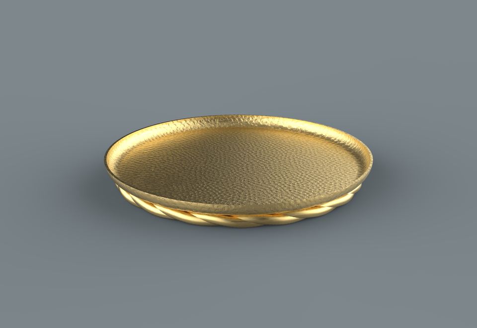 Premium Vantage Metal y malla de ratán combinación oro claro redondo bandeja profunda para servir estilo moderno aspecto elegante bandeja redonda profunda