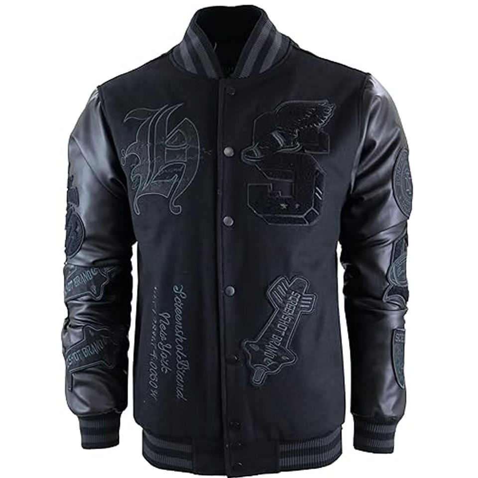 Chaqueta Varsity Premium para Hombre, Logotipo Bordado Personalizado, Chaqueta Bomber de Béisbol con Mangas de Cuero y Lana, Venta al Por Mayor