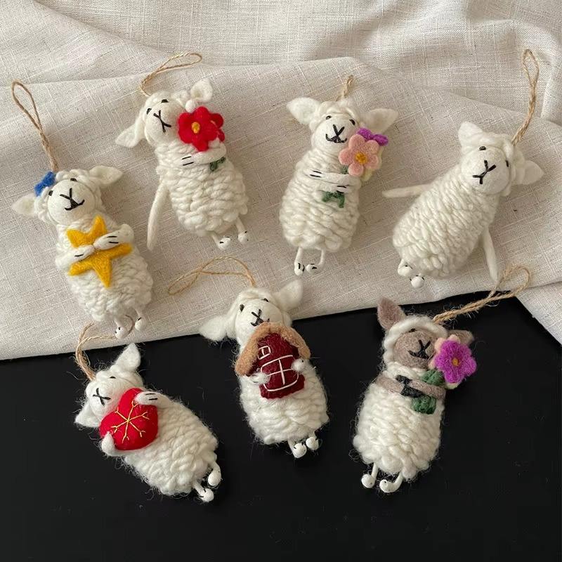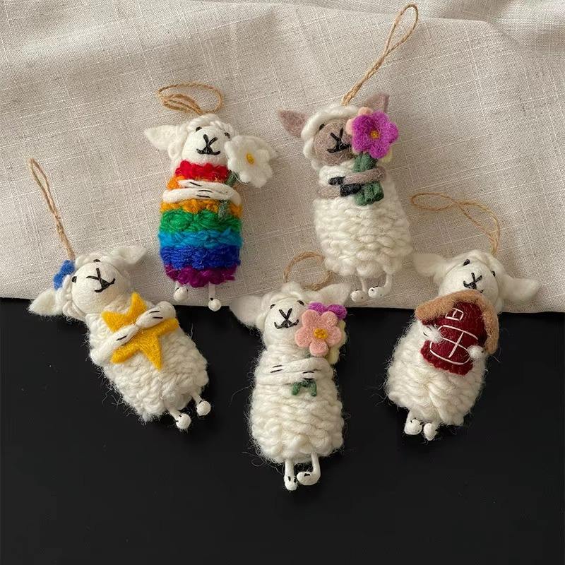 Adorno de Oveja Pequeña de Fieltro de Lana Versátil de Primera Calidad, Llavero de Peluche 3D, Accesorios de 31 cm a 50 cm, MOQ Bajo, Hecho a Mano en Nepal, para Interiores de Automóviles