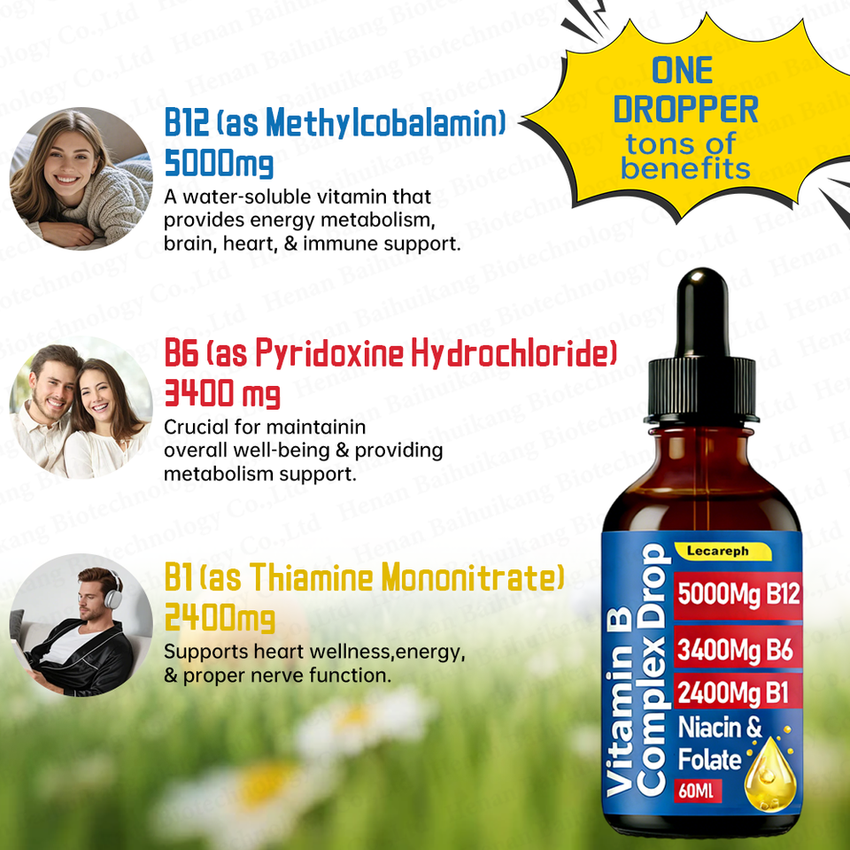 Gotas de Complejo Vitamínico B Premium de Alta Potencia con B12, B6, B1, Suplemento Diario Integral de Vitaminas B para Hombres y Mujeres