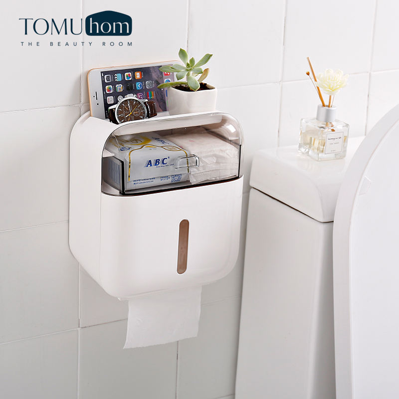 Soporte de caja de pañuelos montado en la pared de primera calidad, soporte de papel de baño impermeable, caja de servilletas multifuncional de plástico con cajón