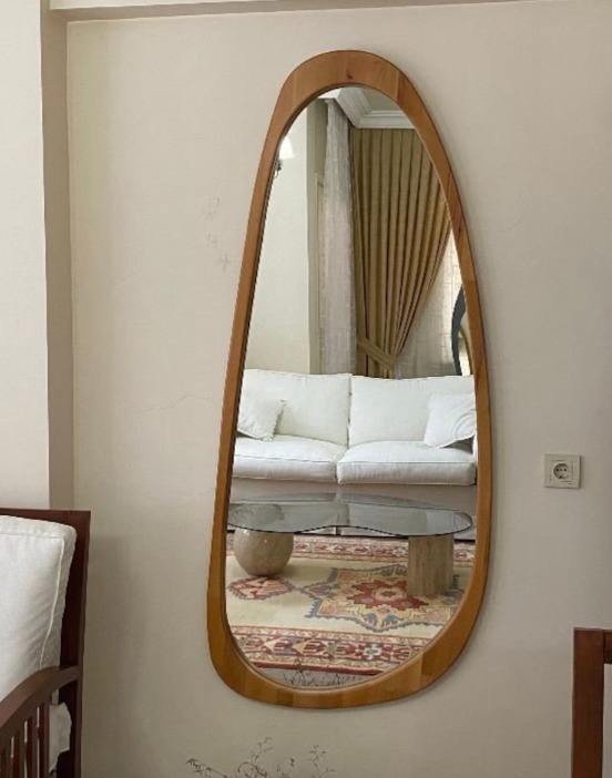 Espejo de Pared Asimétrico Art Deco de Nogal Premium, Hecho a Mano, Ecológico, Decoración Sostenible de Madera para Entrada y Sala de Estar