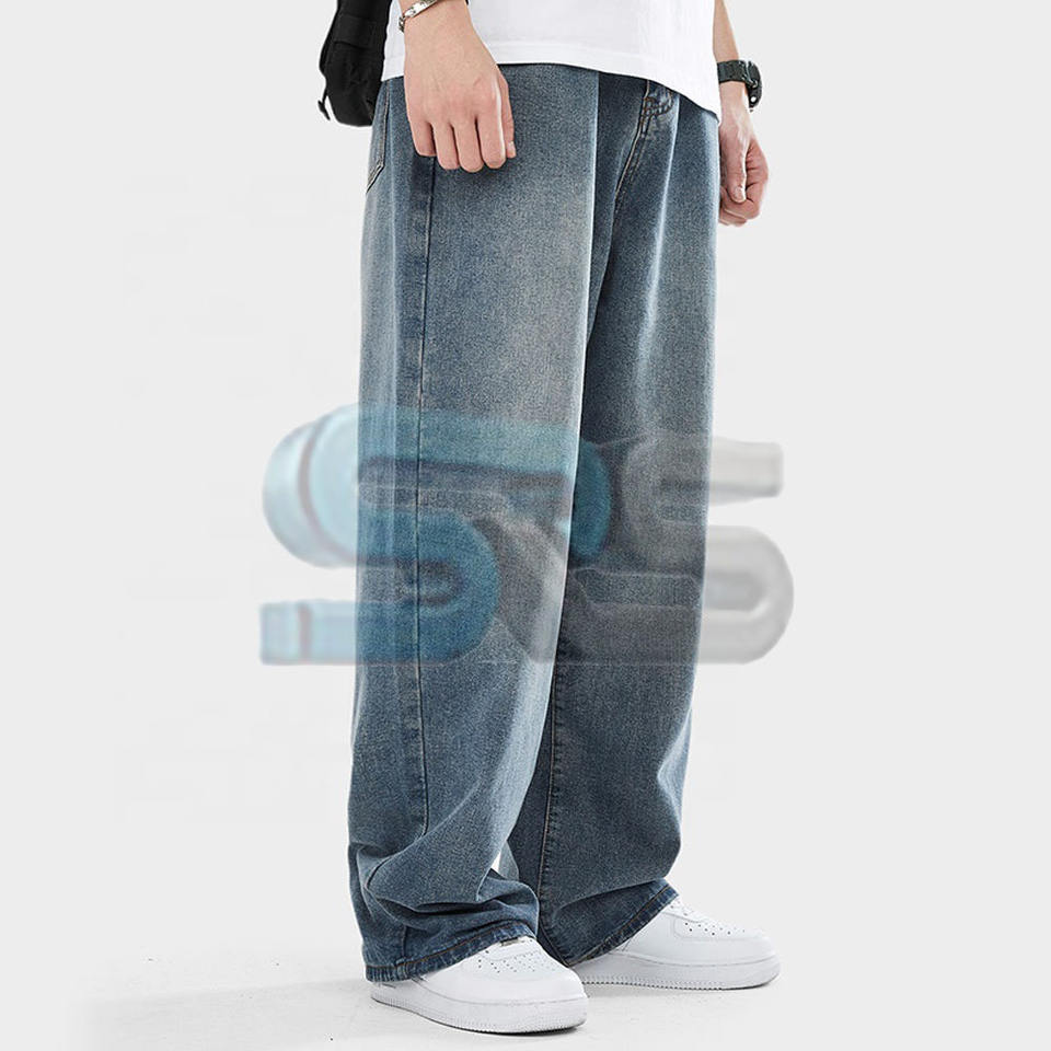 Pantalones Vaqueros de Mezclilla para Hombre, Estilo Holgado, Lavado Premium, Logotipo Personalizado, Estilo Recto, Cintura Media, 100% Algodón, Ropa Casual de Calle