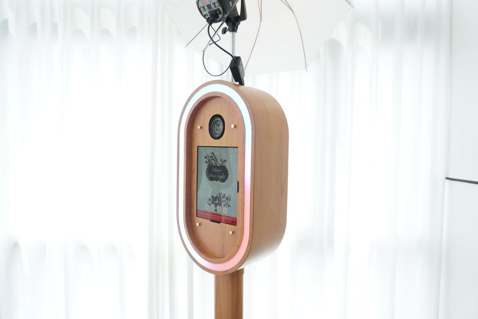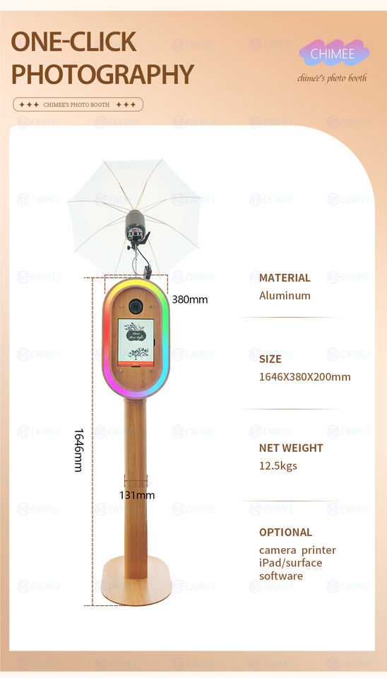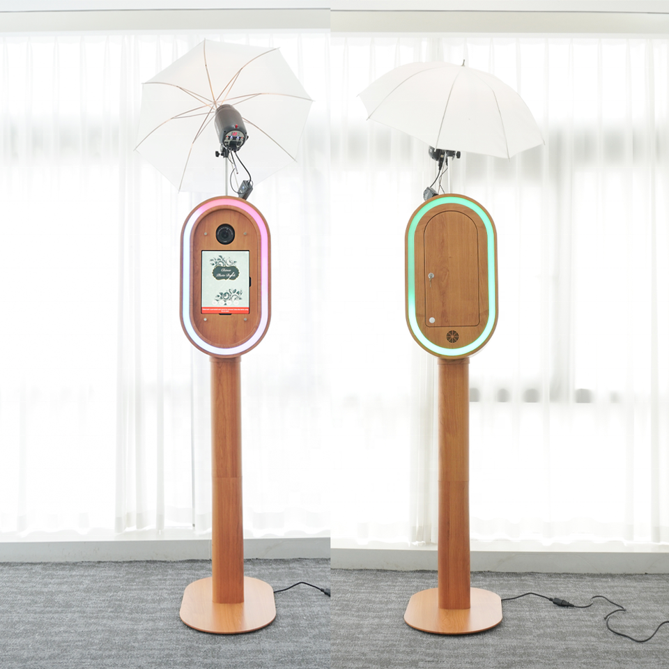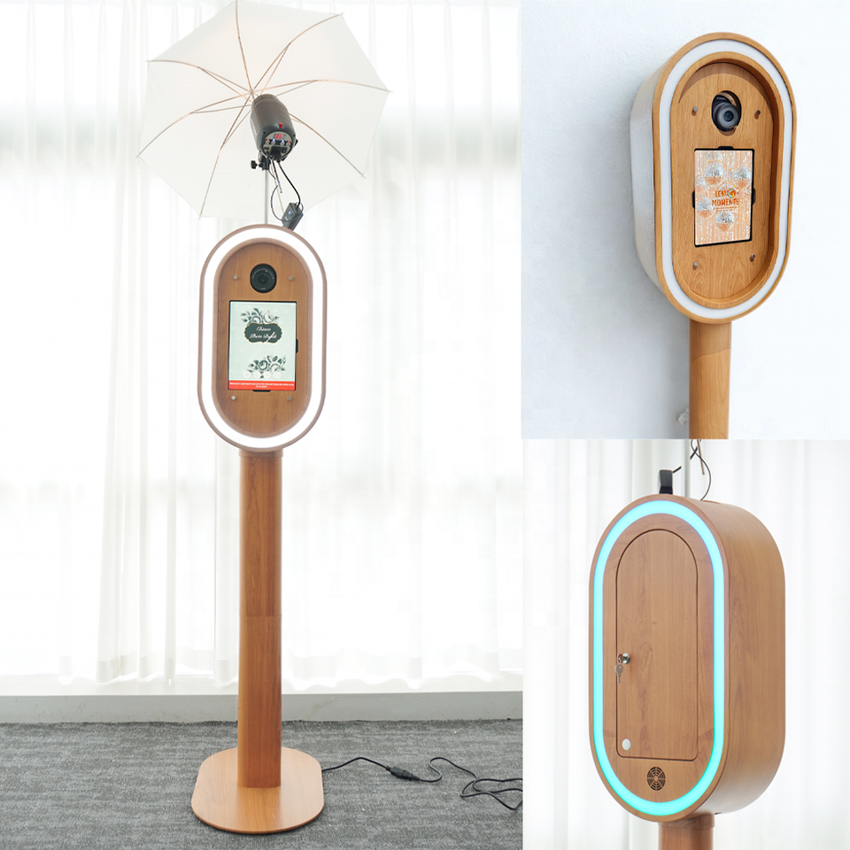 Cabina de Fotos Premium para Bodas, Color Madera, para iPad y DSLR, con Luz RGB y Estuche de Transporte