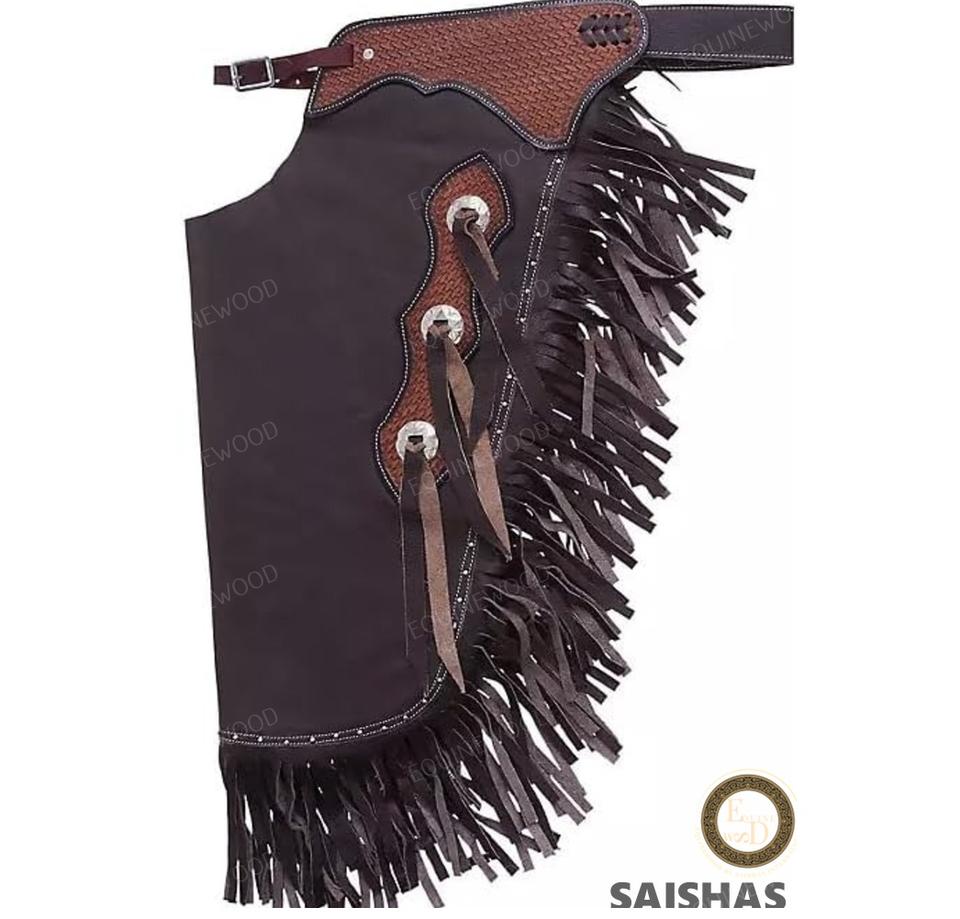 Chaps de cuero occidental de primera calidad Durable y cómodo Ajuste ajustable Equipo de equitación de vaquero hecho a mano para montar a caballo y Rodeo