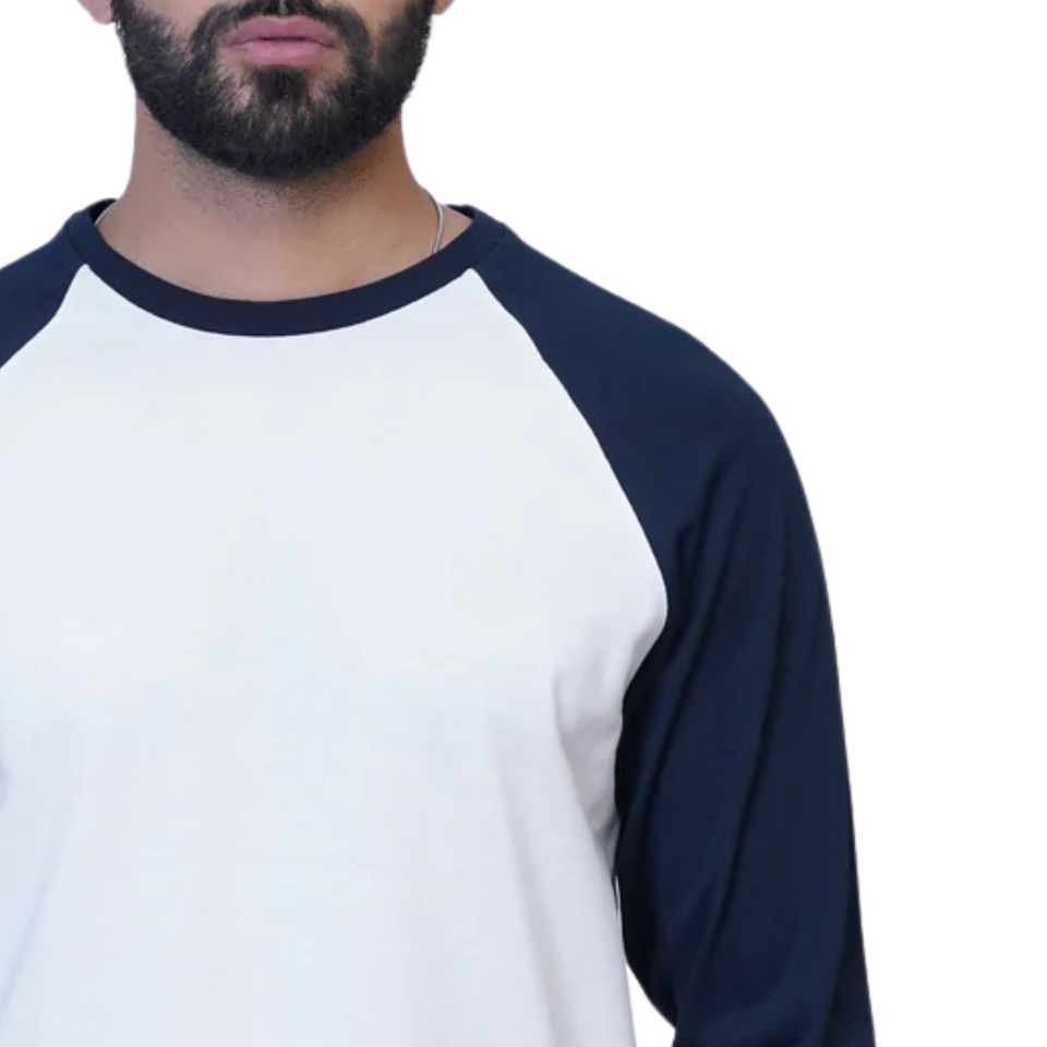 Sudadera Raglán Premium Blanca y Azul Marino, Cómoda, Unisex, Suave, Duradera, Elegante, Informal, para Uso Diario