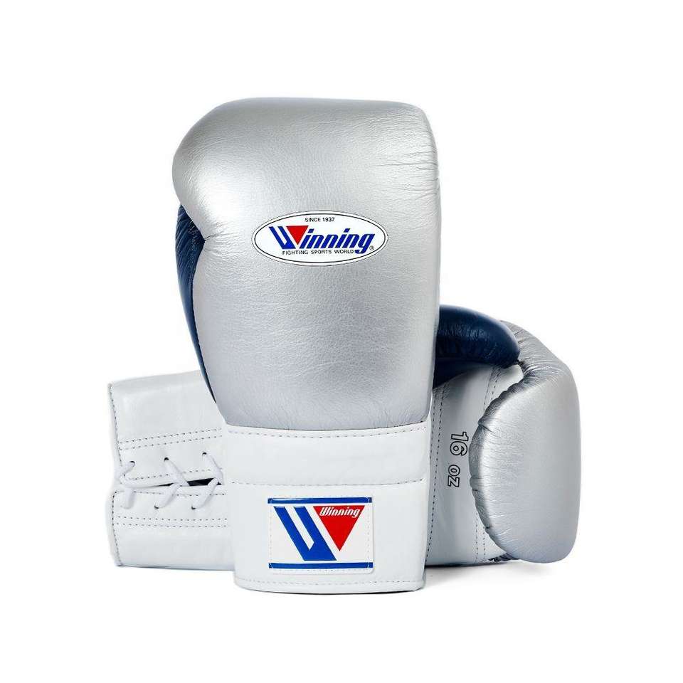 Guantes ganadores Premium Plata Azul Colorway Pro Equipo de entrenamiento de boxeo Guantes de cuero Premium para luchadores