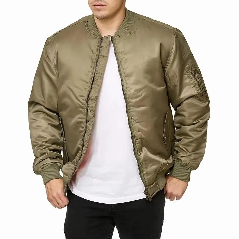 Premium Winter Bomber Jacket Hombres Front Logo Streetwear Casual Ligero Cremallera 100% Poliéster