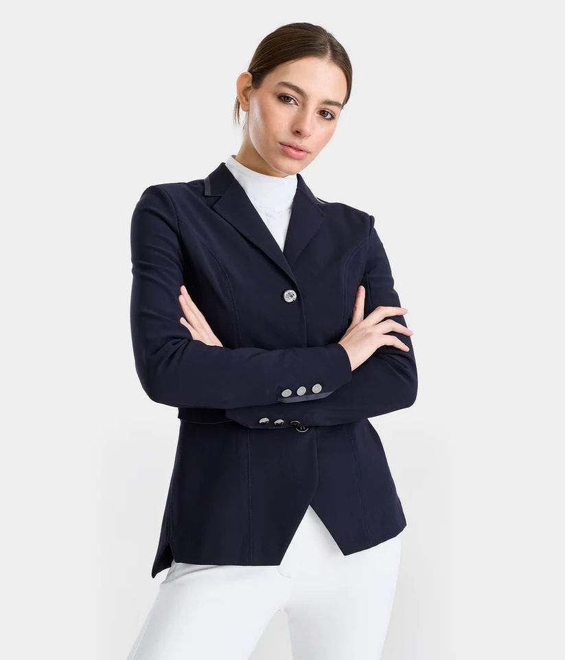 Chaqueta de competición ecuestre premium para mujer, suave, de ajuste equilibrado, transpirable, duradera, para espectáculos ecuestres.