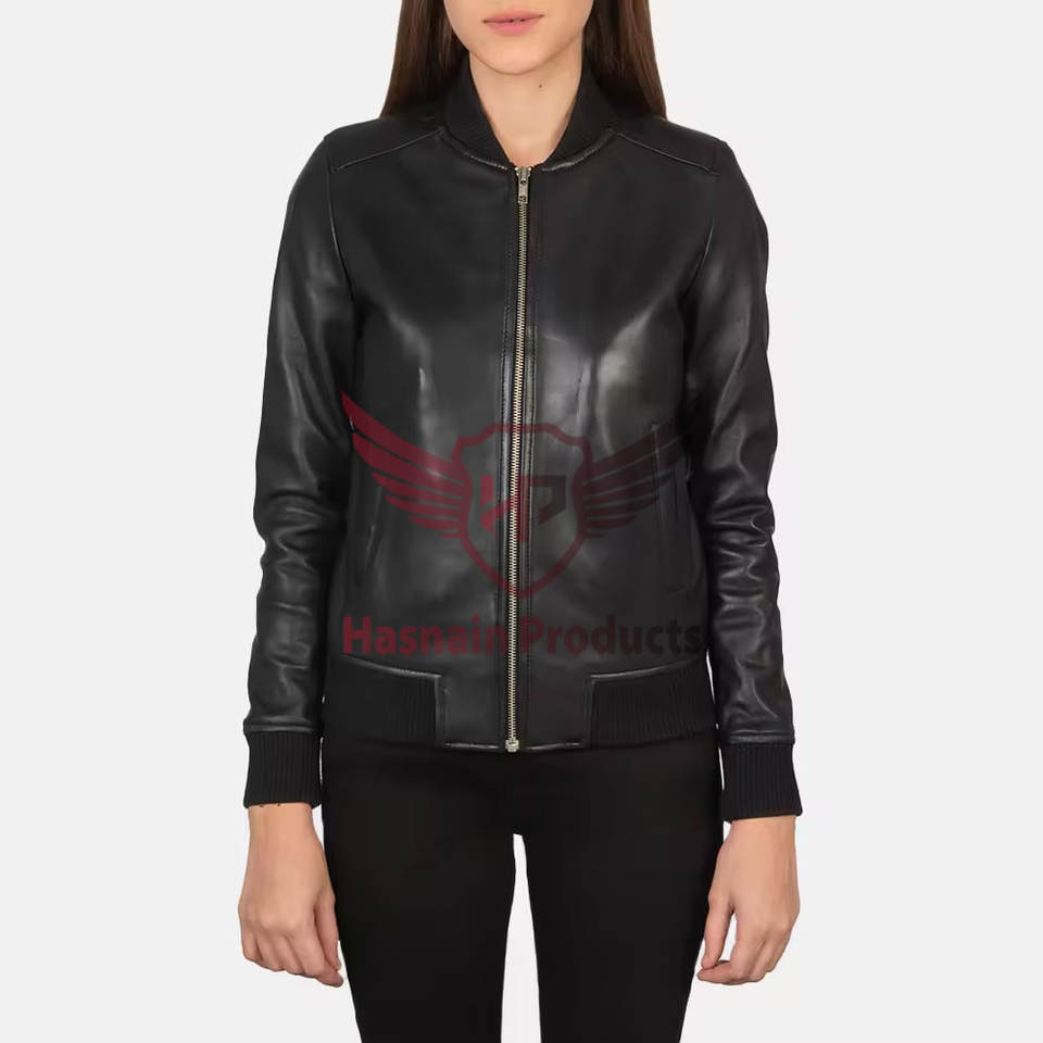Chaqueta Bomber de cuero negro Avan para mujer de primera calidad, nueva moda, prendas de vestir exteriores ajustadas, lana de procesamiento de punto transpirable de gran tamaño
