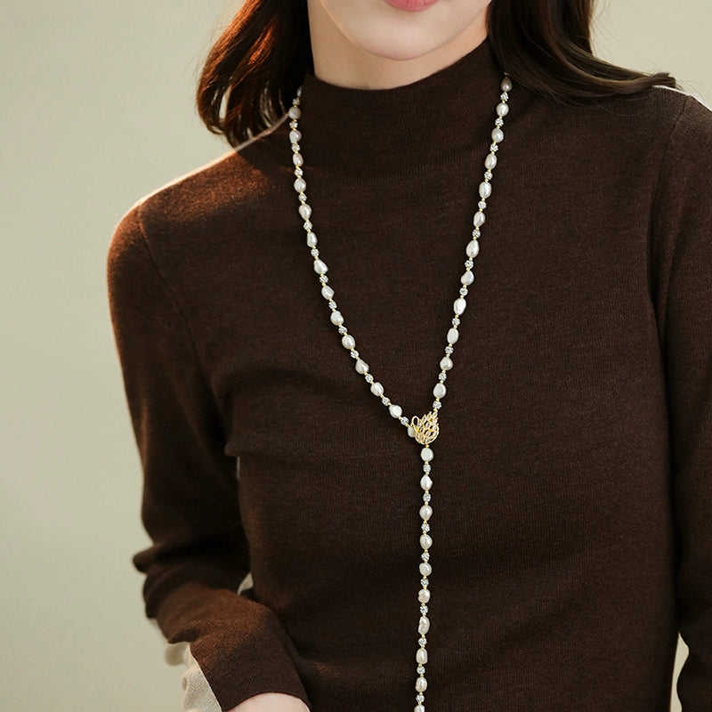 Collar de Perlas Barrocas Naturales Premium para Mujer, Colección Otoño-Invierno, Estilo Ligero y Delicado, Cadena Larga para Suéter, Ideal para Combinar