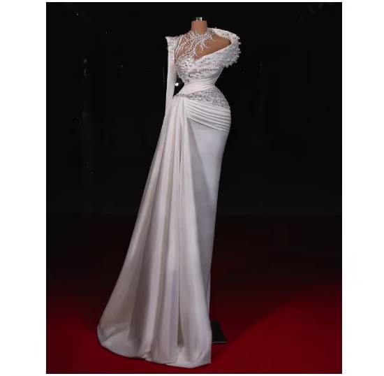 Vestido de Noche Elegante para Mujer, Diseño con Cuentas, Detalles de Perlas, Tela de Lujo, Estilo Sirena hasta el Suelo