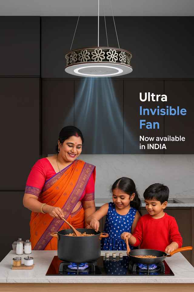 Ventilador de Techo Invisible para Cocina con Motor de CC Premium, Acabado en Madera, con Luz LED, Diseño sin Aspas, Funcionamiento Silencioso y Regulable