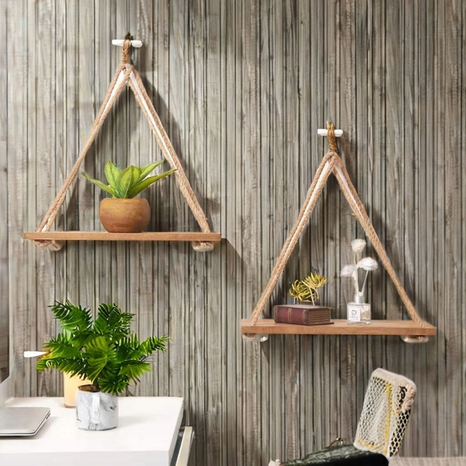 Estantes flotantes de madera de primera calidad, cuerda colgante, Simple, contemporáneo, montado en la pared, maceta para interiores/exteriores, aniversarios de plantas