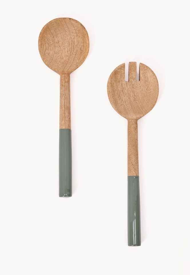 Juego de cubiertos de madera de primera calidad con brillo de acero espejado hecho a mano y tallado en mango de acacia y maderas de pino para cenar a la perfección