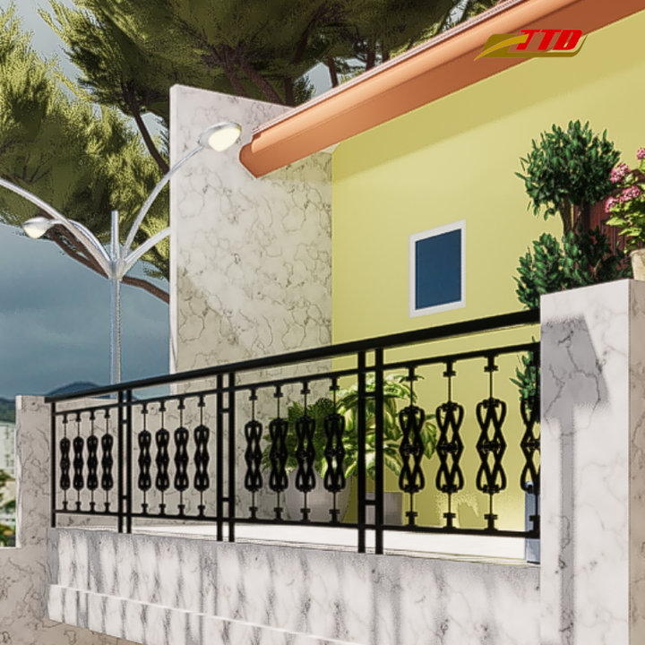 Barandilla de hierro para balcón Premium hecha en Vietnam con acero al 100 por ciento y volutas decorativos hechos a mano