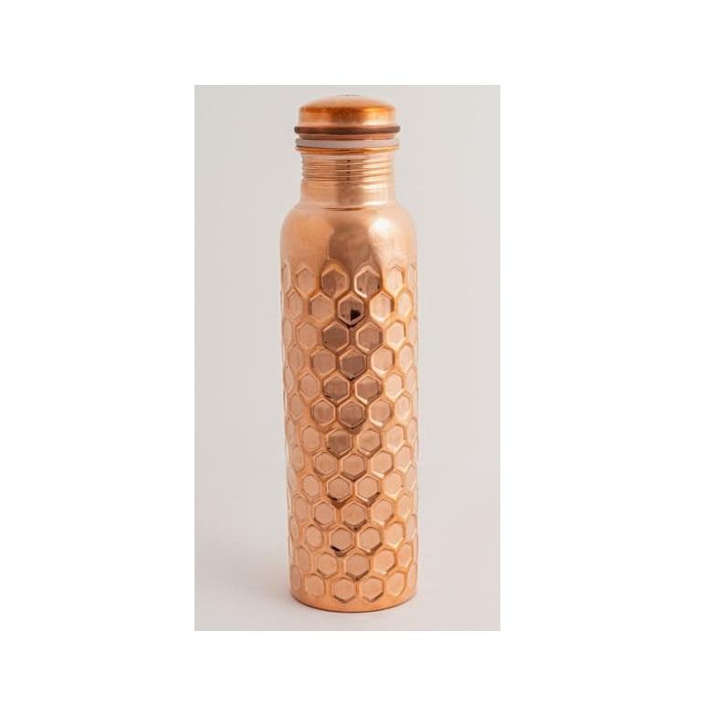 Botella de agua de calidad premium hecha de cobre puro para oficina, gimnasio y yoga, Ayurveda, botella de cobre recomendada, estilo indio