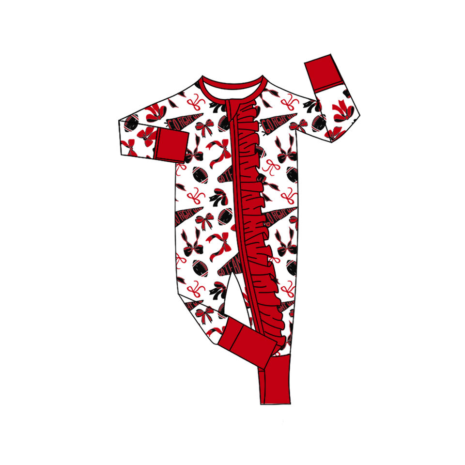 Pelele de fútbol de primavera para niñas bebés, manga larga, lazo rojo, cierre de cremallera, Spandex, algodón orgánico