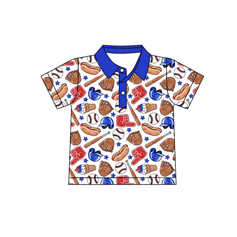 Preventa al por mayor: Ropa infantil de alta calidad para niños pequeños, con estampado festivo de béisbol y comida, azul, para verano, para hermanos. Pedido mínimo 5 unidades.