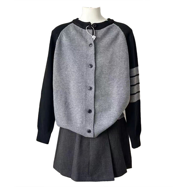 Cárdigan de punto estilo preppy con bloques de color y rayas para mujer, nuevo, informal, versátil, holgado, adelgazante, con estampado frontal, para otoño