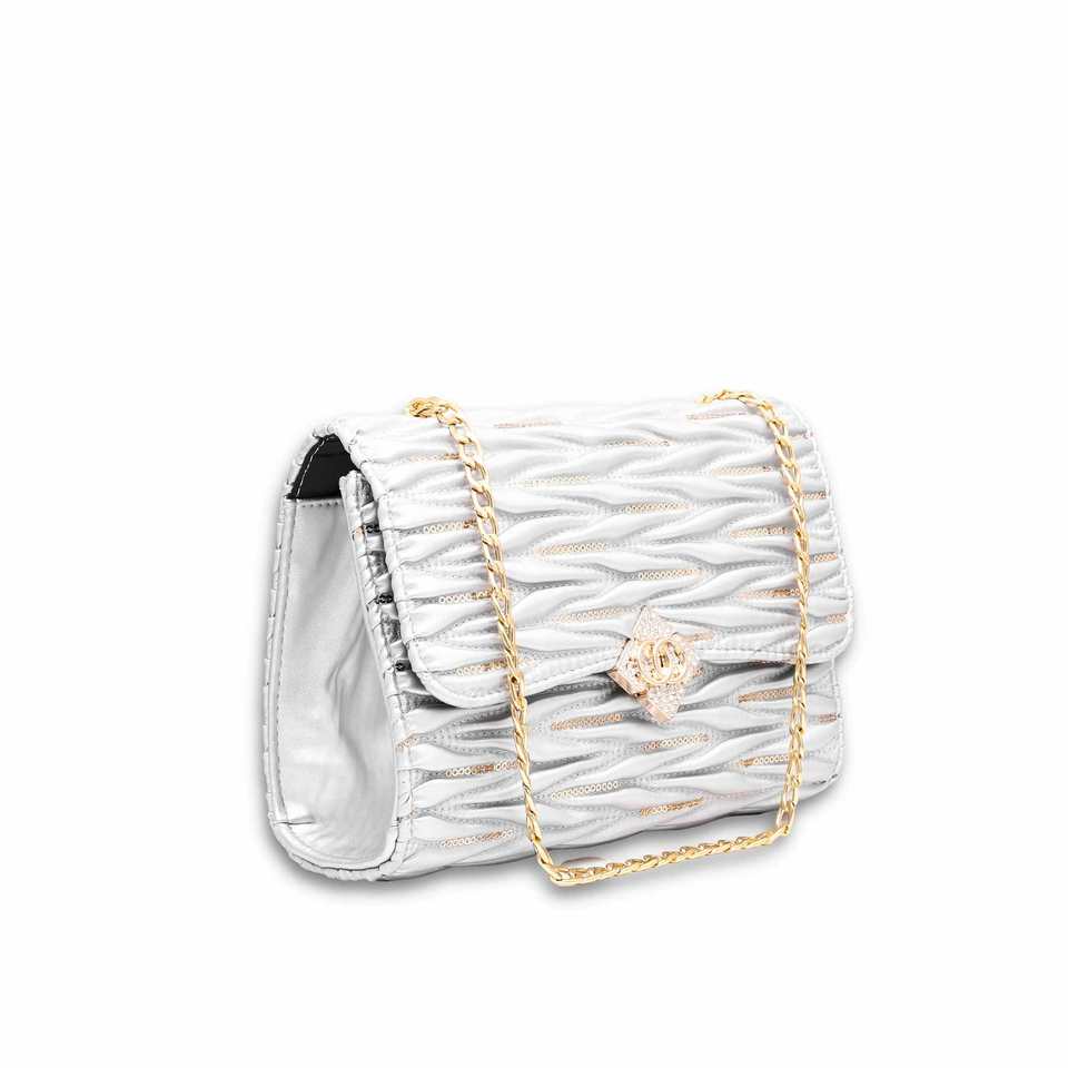Bolso de hombro informal plateado de estilo pijo P55596 para mujer con un solo mango a prueba de agua portátil con cremallera cadenas perlas para verano invierno