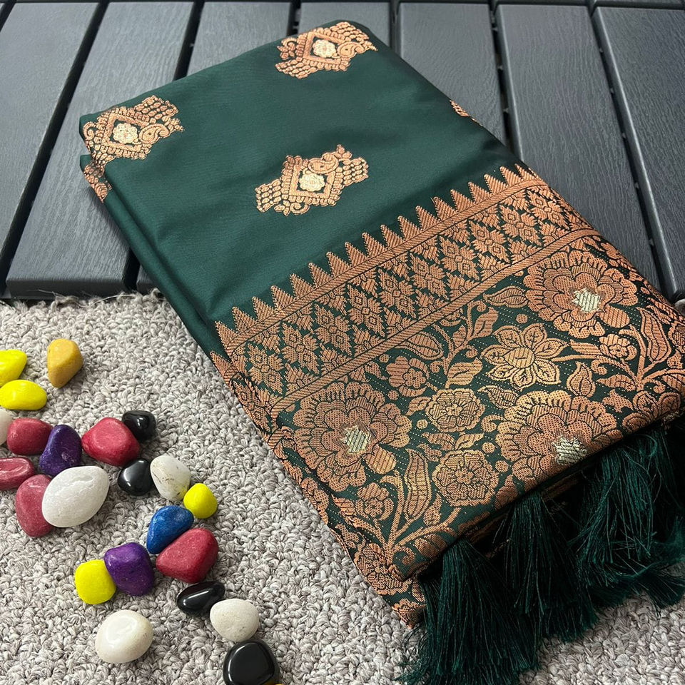 Sari de seda con hilo de cobre con contraste de tela de dos tonos, blusa de brocado rica y pesada, ropa de fiesta, función especial
