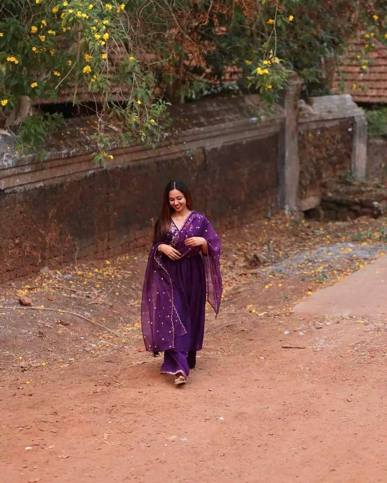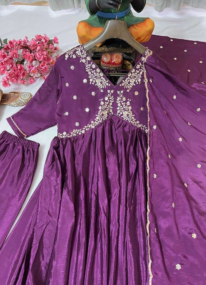 Nombre del producto:Chinon Silk Zari & Sequence Top DE TRABAJO Palazzo y Dupatta